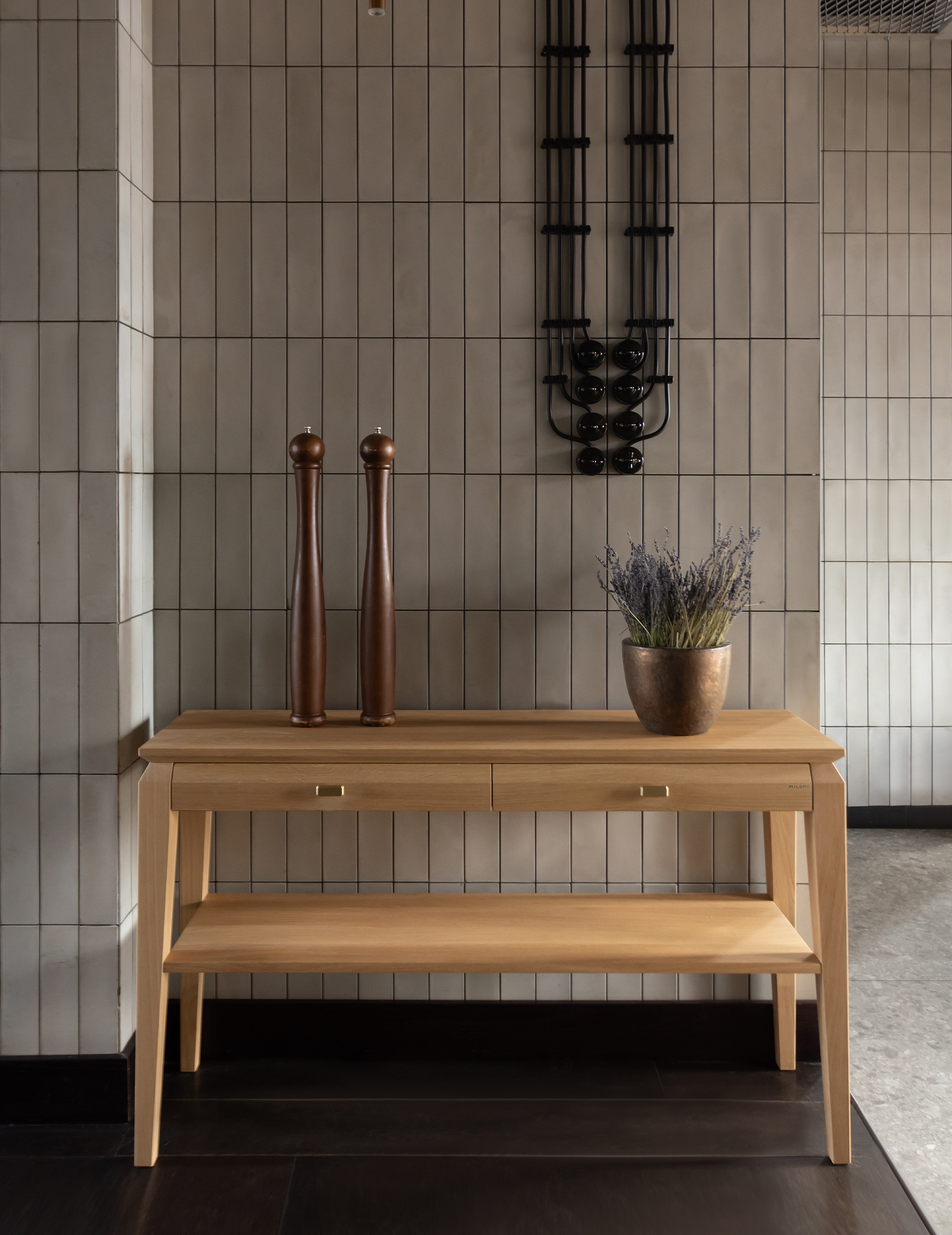 Wykonana z litego drewna dębowego, zachwyca trwałością i naturalnym, ciepłym wykończeniem, wprowadzając do wnętrza przytulny charakter. Jej smukła bryła i subtelne detale podkreślają wyrafinowany styl kolekcji Avangarde, idealnie wpisując się w zarówno klasyczne, jak i współczesne aranżacje.