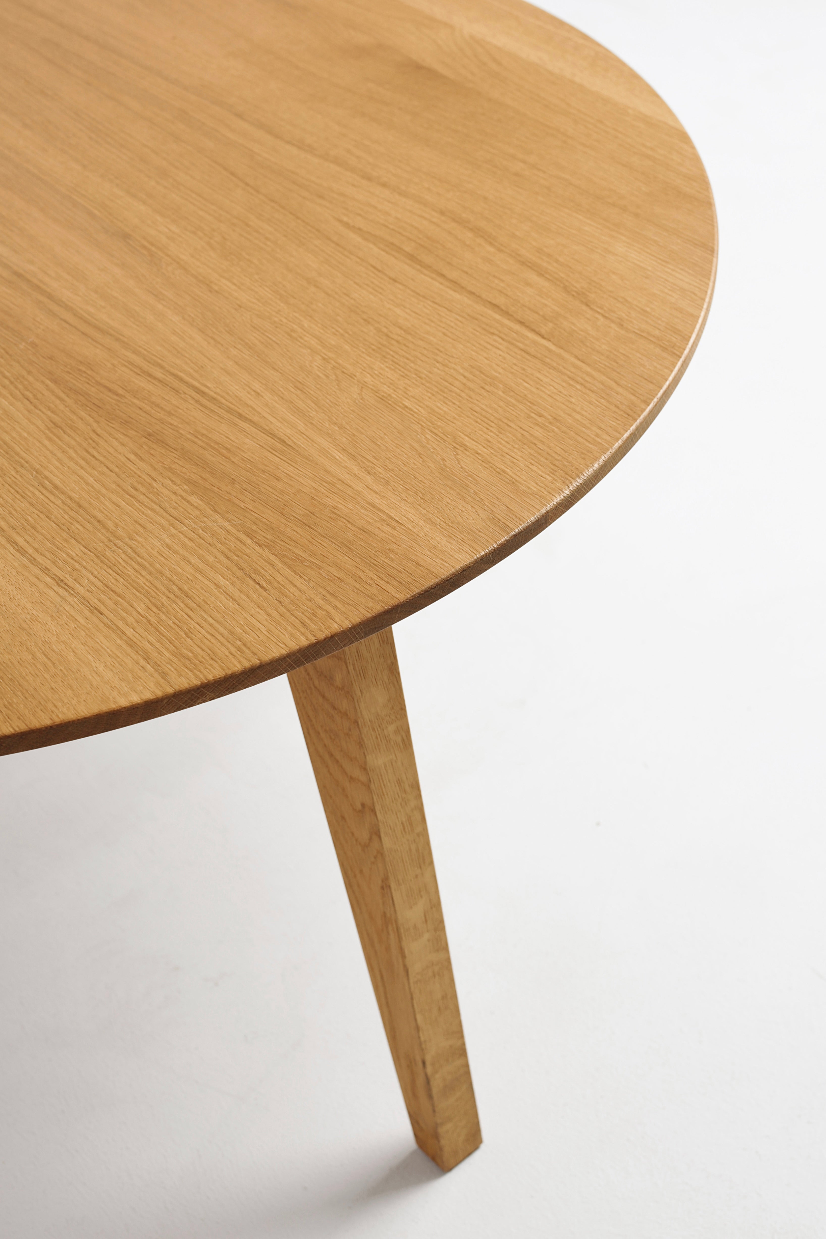 Do wygodnego zaaranżowania przestrzeni wypoczynkowej w salonie niezbędny jest funkcjonalny stolik kawowy. Bardzo uniwersalnym rozwiązaniem jest okrągły stolik kawowy z serii FOX. Delikatnie podcięty dębowy blat oraz cztery lekko cofnięte nóżki tworzą nienarzucająca się formę, która świetnie wkomponuje się w przestrzeń każdego salonu.