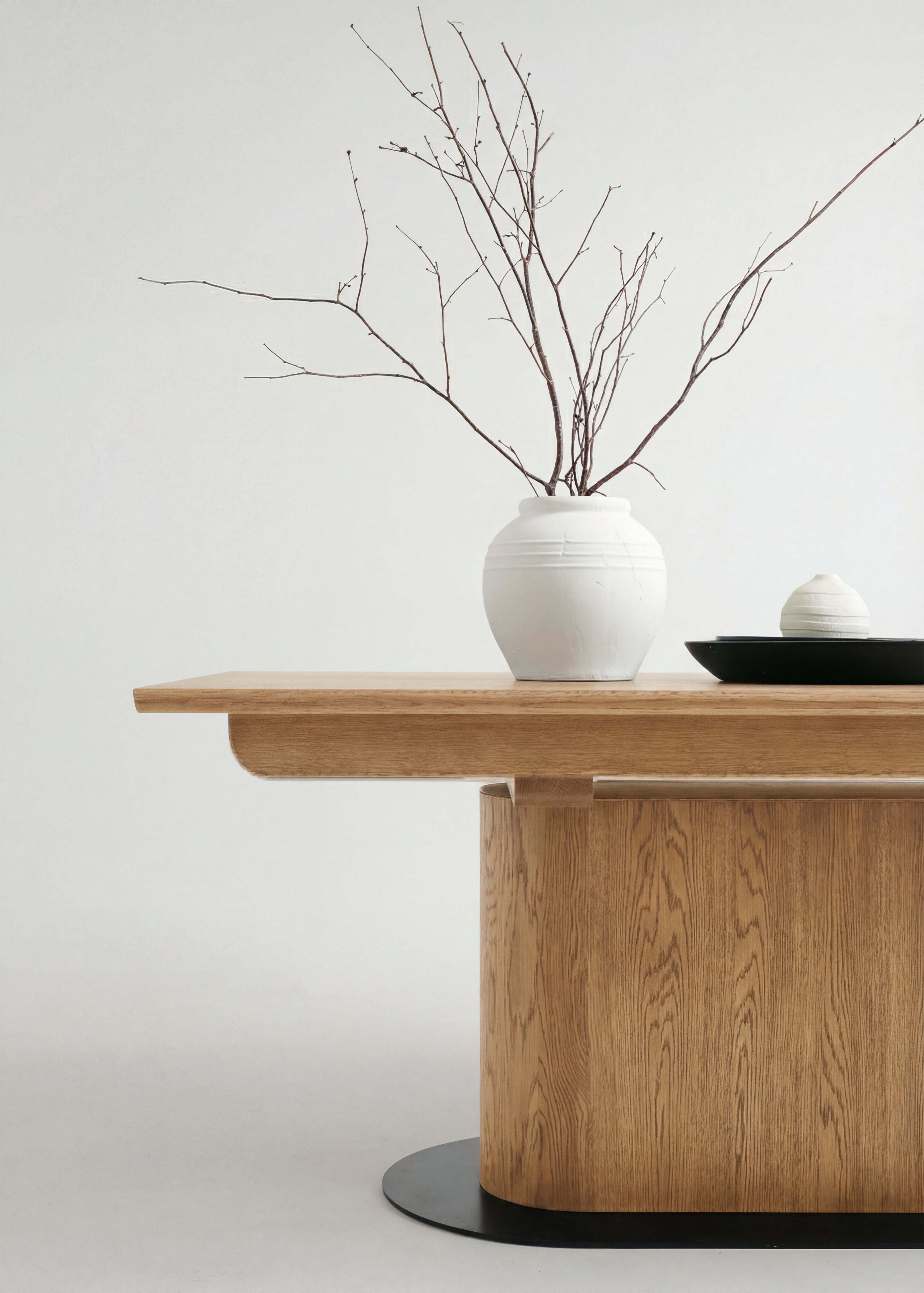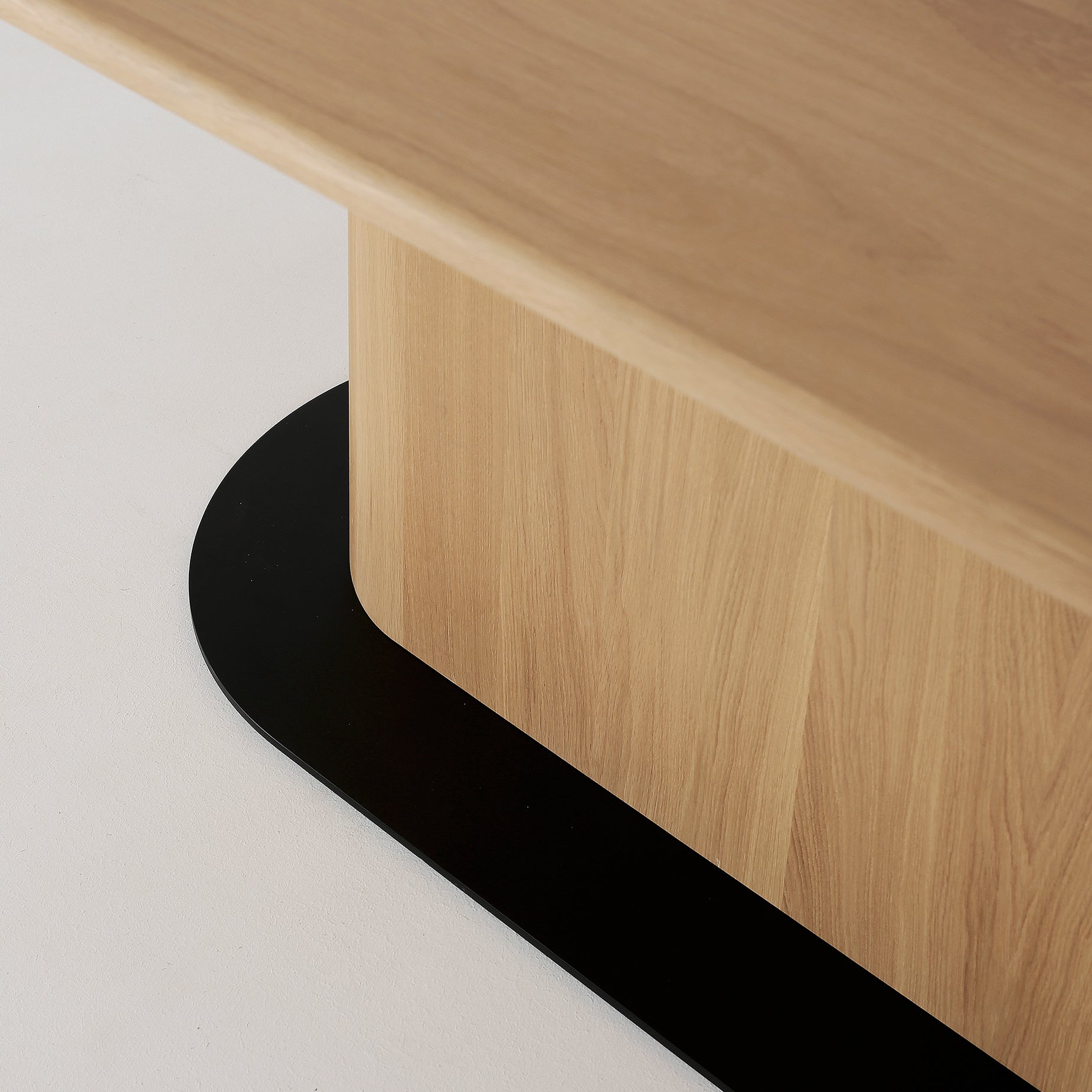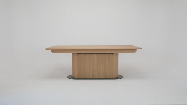 Stół z kolekcji TUO zaprojektowane przez Studio Rygalik. Stół TUO to innowacyjne i wyjątkowe na rynku rozwiązanie rozkładanego stołu na cokole wykonanego z litego drewna. Zgrabna, organiczna forma stołu nie przeczy jego znaczącym wymiarom i niezawodnej stabilności. Nowoczesny, trwały, a przy tym łatwy w użytkowaniu mechanizm rozkładania pozwala na dostosowanie długości blatu do spotkań w większym gronie. Niezaprzeczalnym atutem stołu TUO w wersji rozkładanej jest brak dzielenia blatu, przez co cały mechanizm rozkładania pozostaje niewidoczny. Podczas gdy blat i cokół wykonane są z drewna dębowego, współczesny charakter stołu podkreślony został dodatkowo dzięki zastosowaniu metalowej podstawy. Stół TUO doskonale sprawdzi się jako miejsce rodzinnych biesiad, a także biznesowych spotkań.