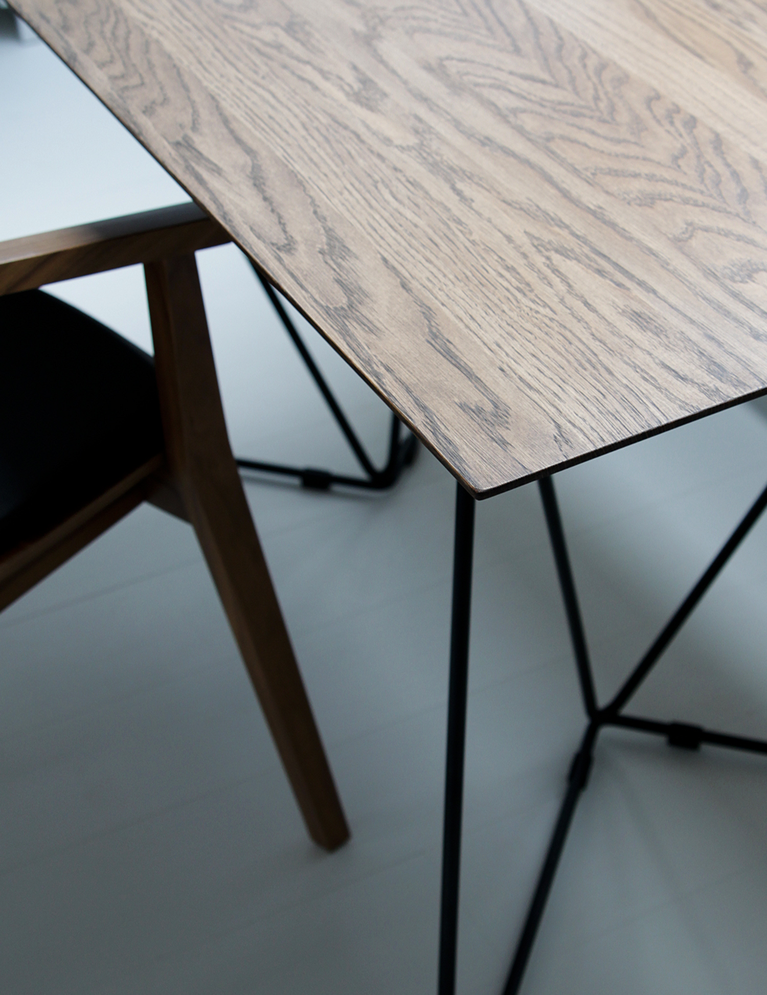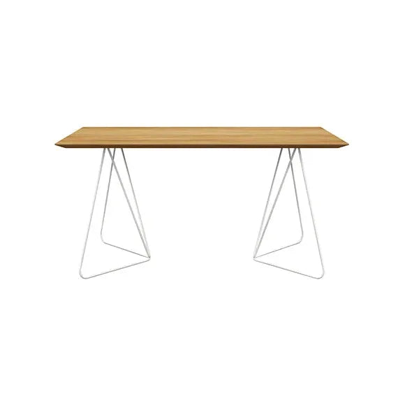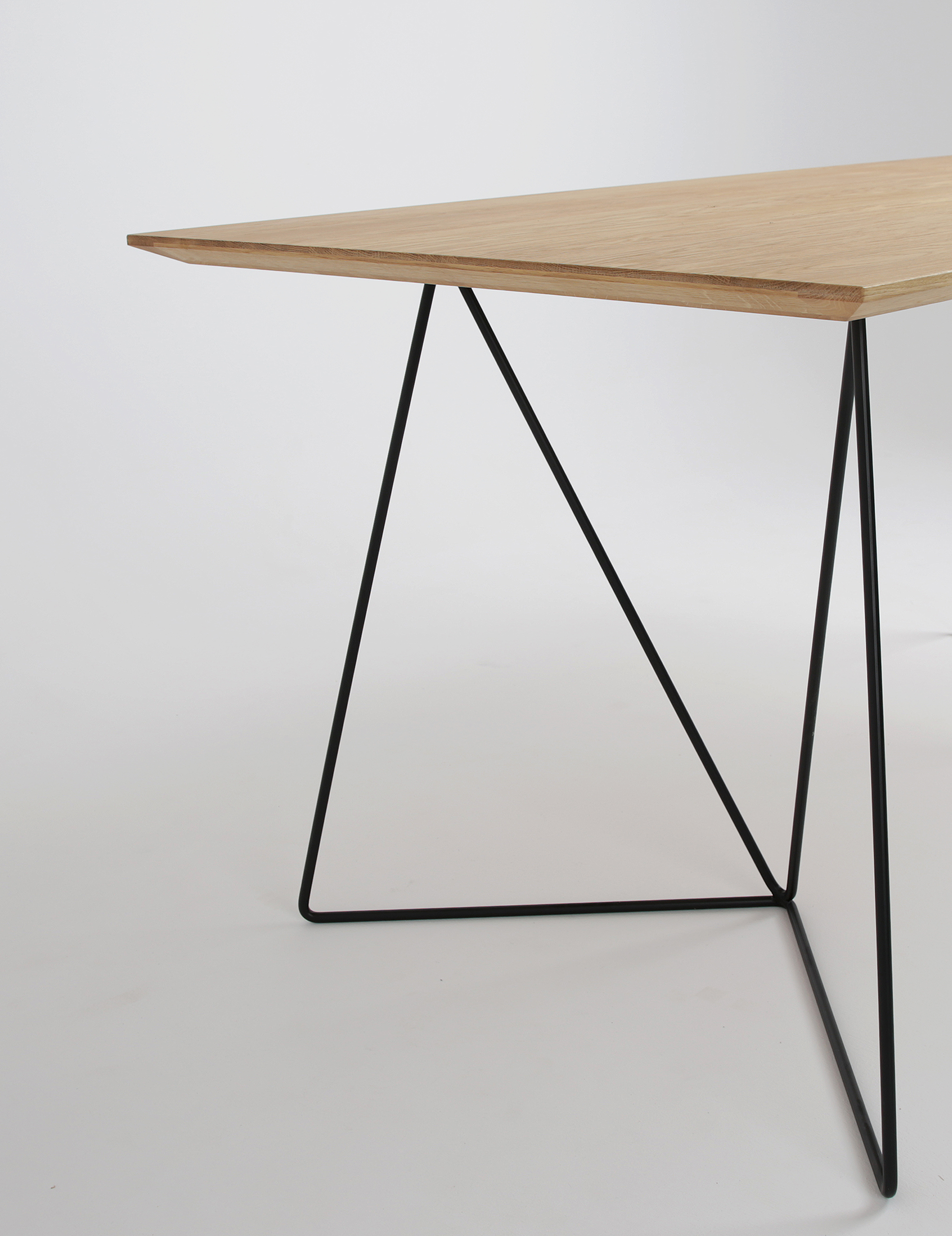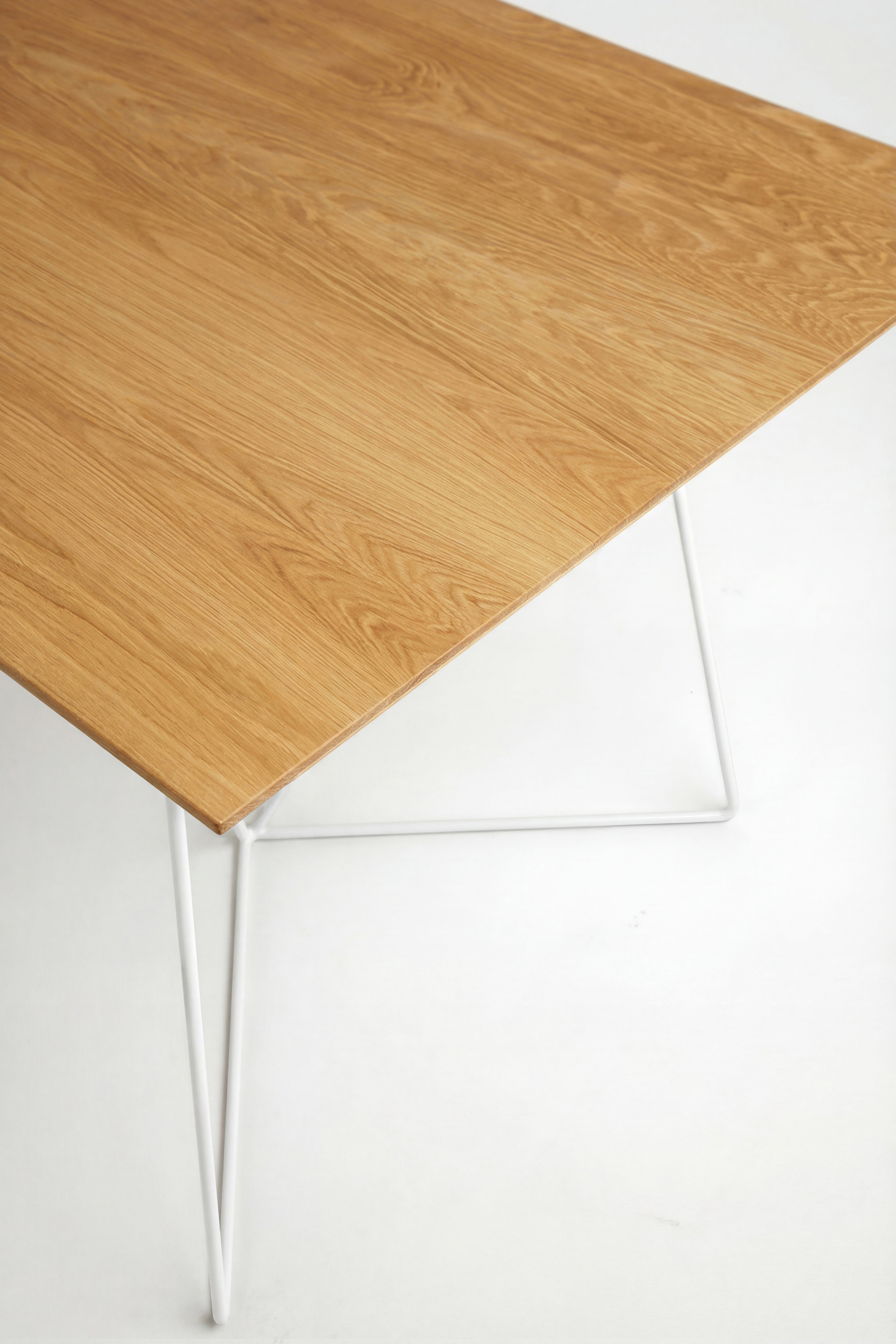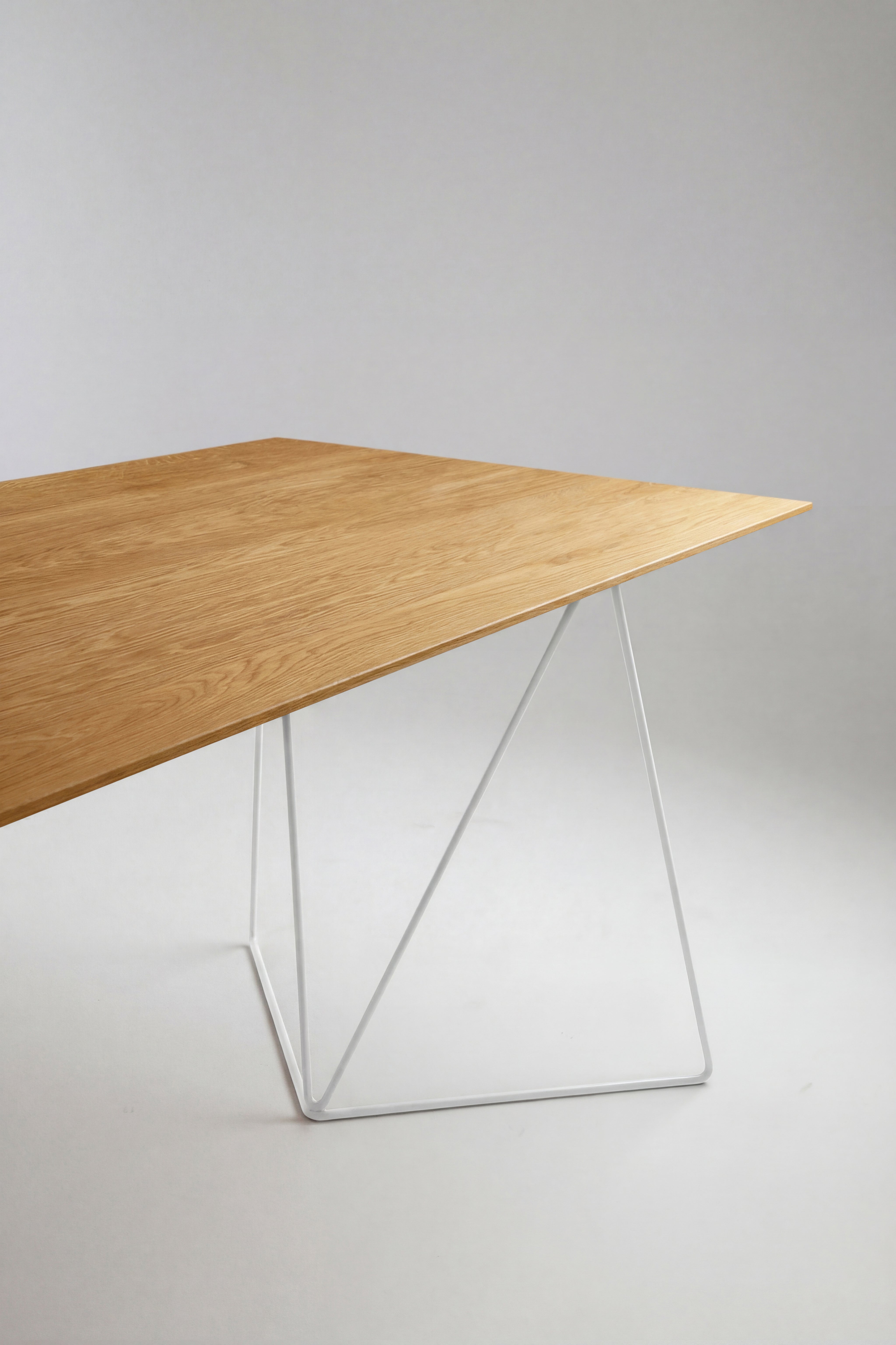 Biurko industrialne FLY to jeden z tych modeli MILONI, których dębowy blat oparty jest na metalowej podstawie. Nogi w tym modelu zostały wykonane ze stalowego pręta, malowanego proszkowo w kolorze czarnym lub białym. Drewniany blat biurka został podcięty od spodu na całym obwodzie, dzięki czemu wygląda niezwykle lekko.