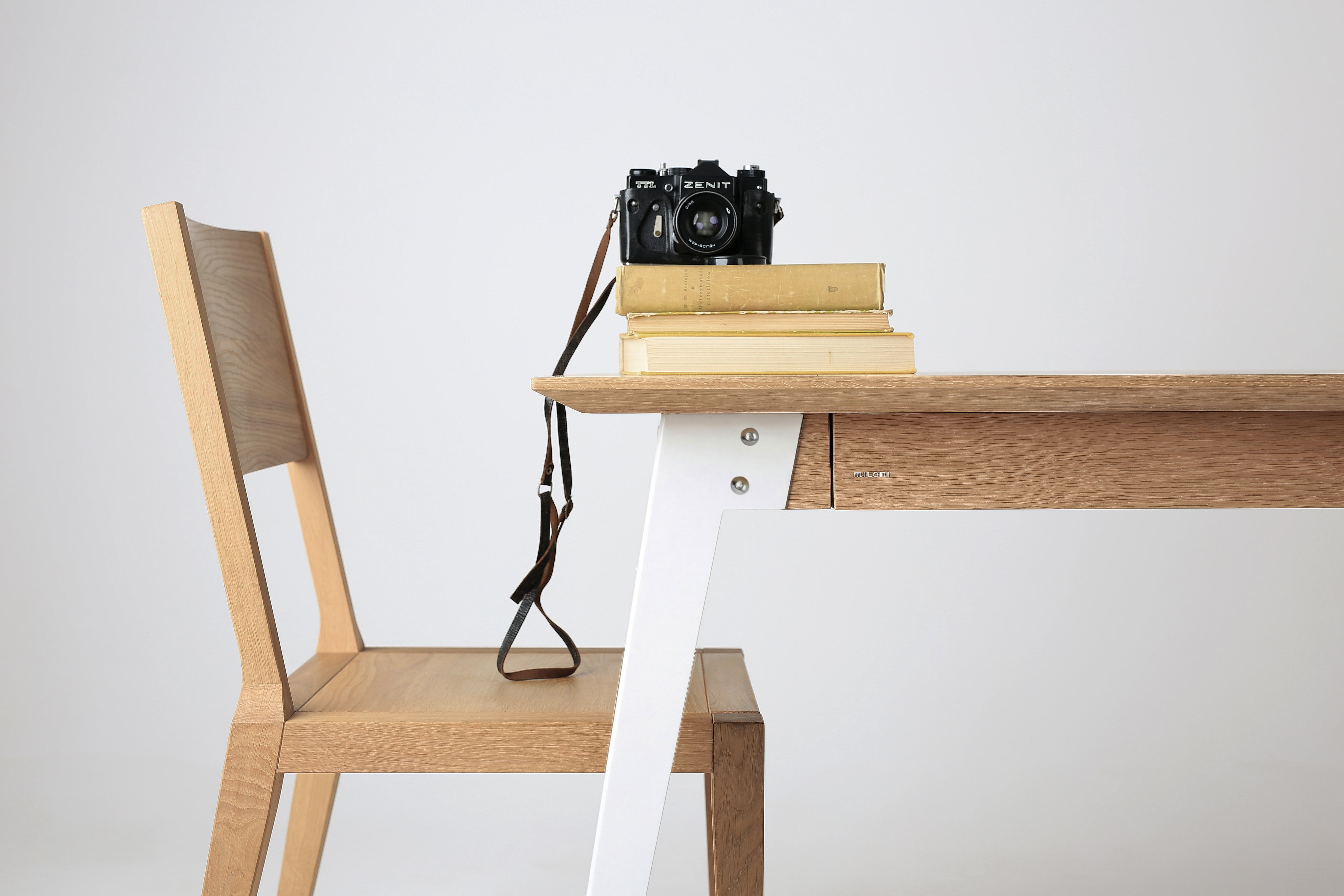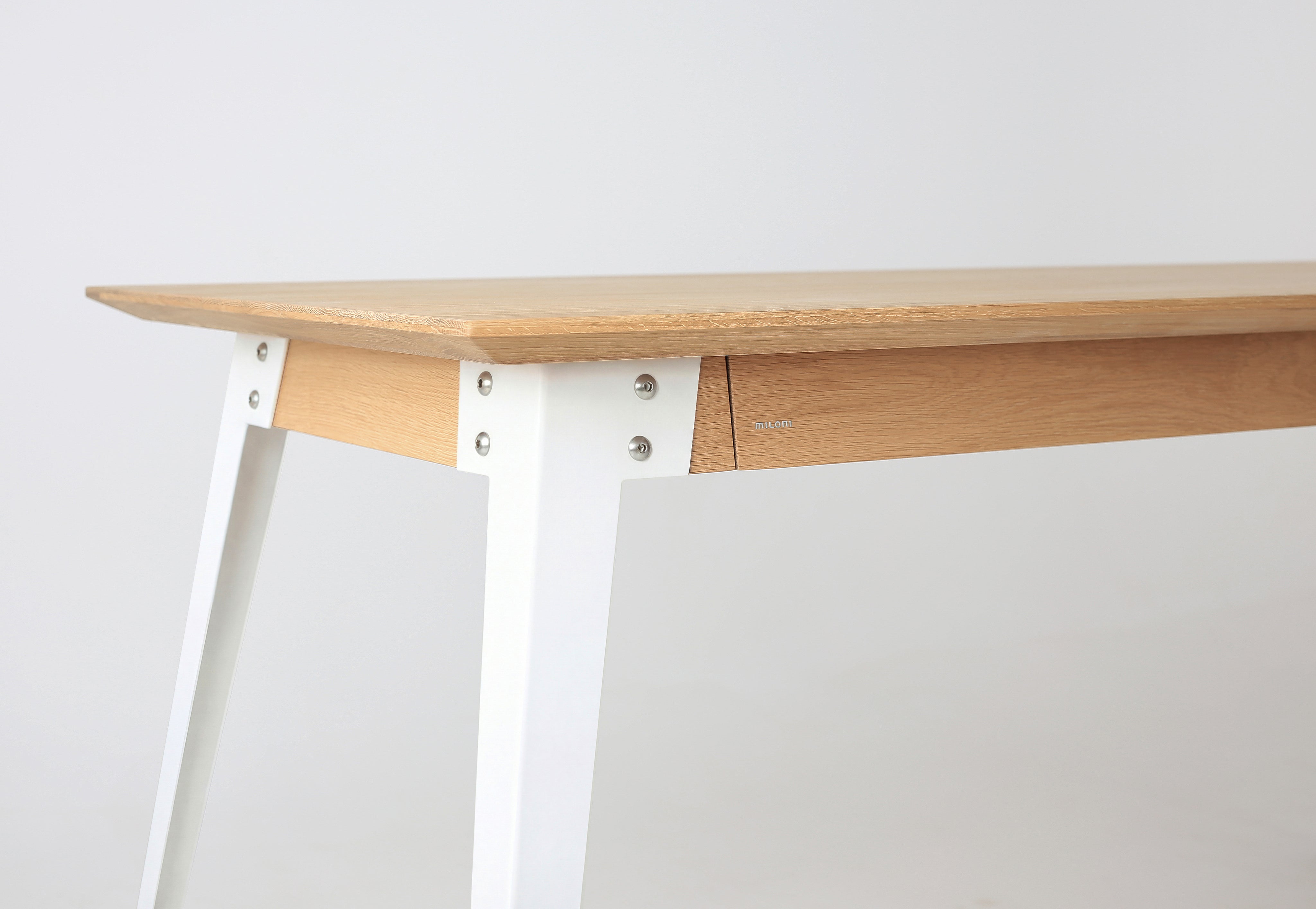 Pod blatem znajdują się dwie szuflady, które są przemyślanym rozwiązaniem, dzięki któremu takie przedmioty, jak przybory do pisania, kartki, notesy, a nawet książka czy drobne pamiątki, znajdą swoje miejsce w przestrzeni biurka i będą zawsze pod ręką.
