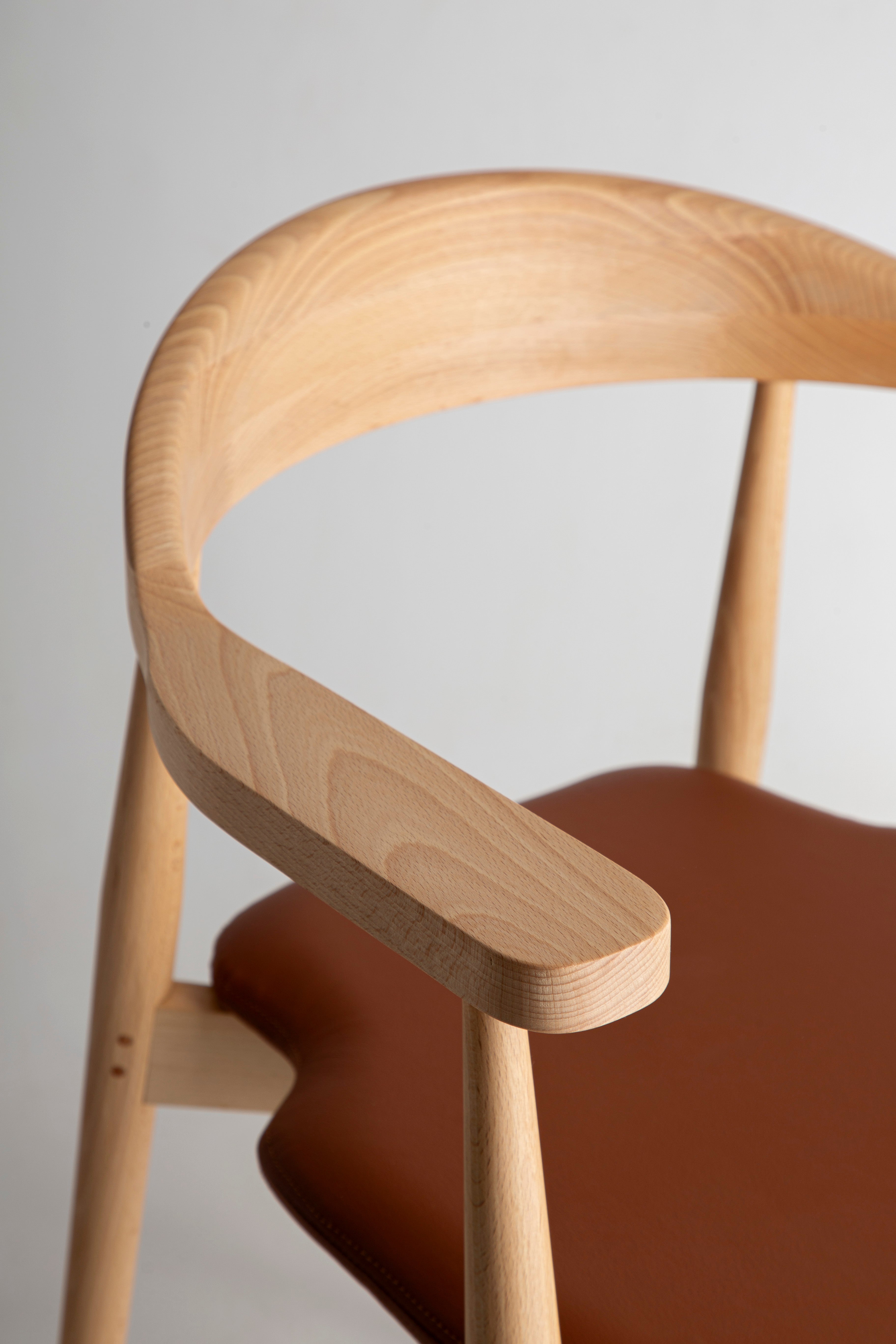 Fotel TANN to esencja minimalistycznego designu i naturalnej elegancji. Wykonane z najwyższej jakości drewna bukowego, wykończone naturalnymi olejowoskami, zachwyca subtelnym rysunkiem słojów i ciepłym odcieniem. Profilowane oparcie i ergonomiczne podłokietniki zapewniają maksymalny komfort użytkowania, a miękkie siedzisko pokryte skórą lub tkaniną dodaje wyrafinowanego charakteru.