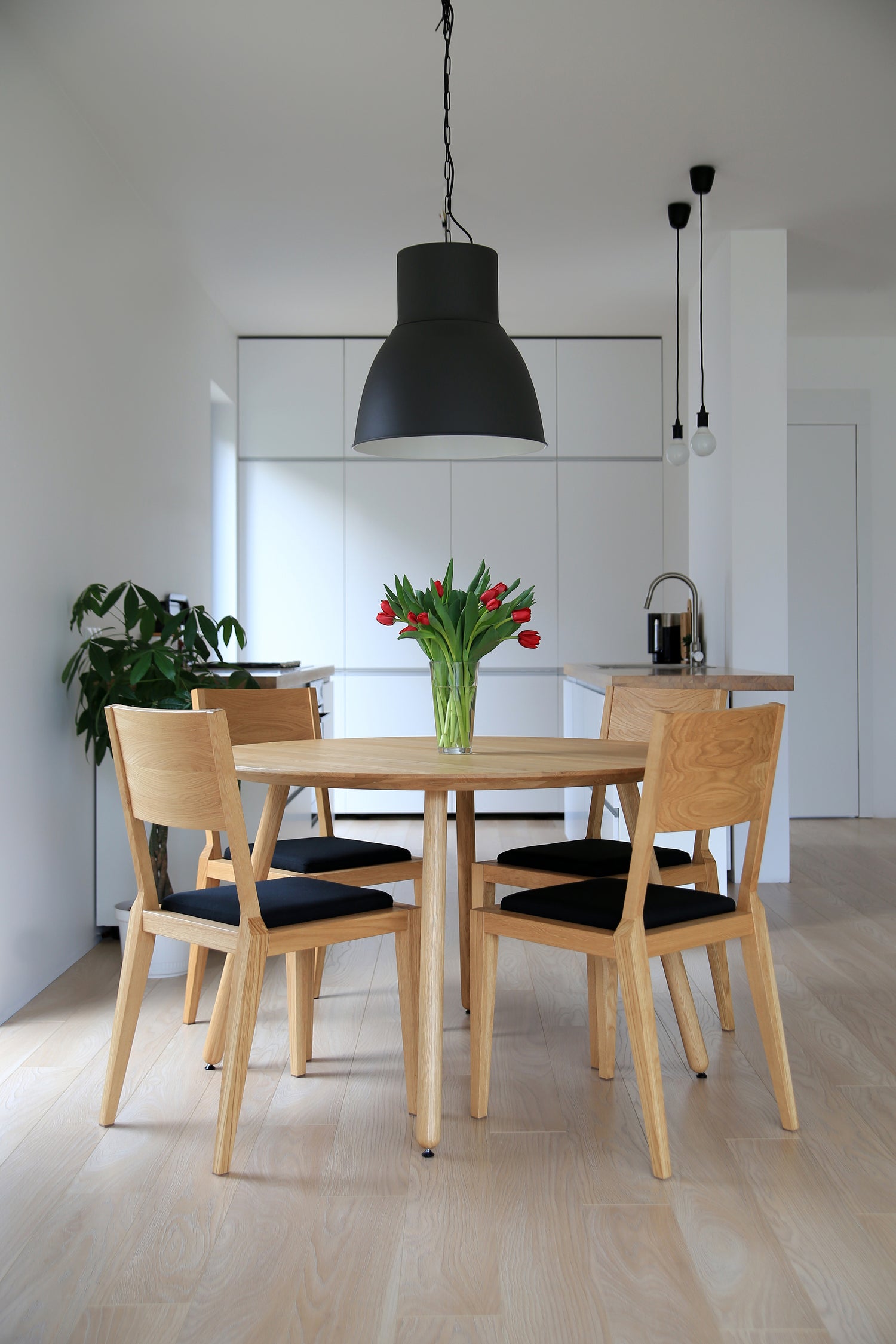 Krzesło dębowe AVANGARDE zostało zaprojektowane tak, by stylistycznie nawiązywać do stołów z tej samej kolekcji. Krzesło posiada zwężające się ku dołowi nogi i charakterystyczne pocienienie wspornika oparcia. Taka linia dodaje mu lekkości i sprawia, że krzesło AVANGARDE doskonale pasuje również do innych stołów MILONI, na przykład tych z serii OX. Konstrukcja krzesła dębowego AVANGARDE w całości wykonana jest z litego drewna.Oparcie profilowane po łuku stanowi stabilną i wygodną podporę dla pleców. Odpowiednio dobrane przekroje drewna oraz solidne wykonanie pozwoliły na uwolnienie krzesła dębowego AVANGARDE od poprzeczek łączących jego nogi, dzięki czemu bryła krzesła jest lekka i wyrazista. Siedzisko może być wykonane w wersji drewnianej lub tapicerowanej.