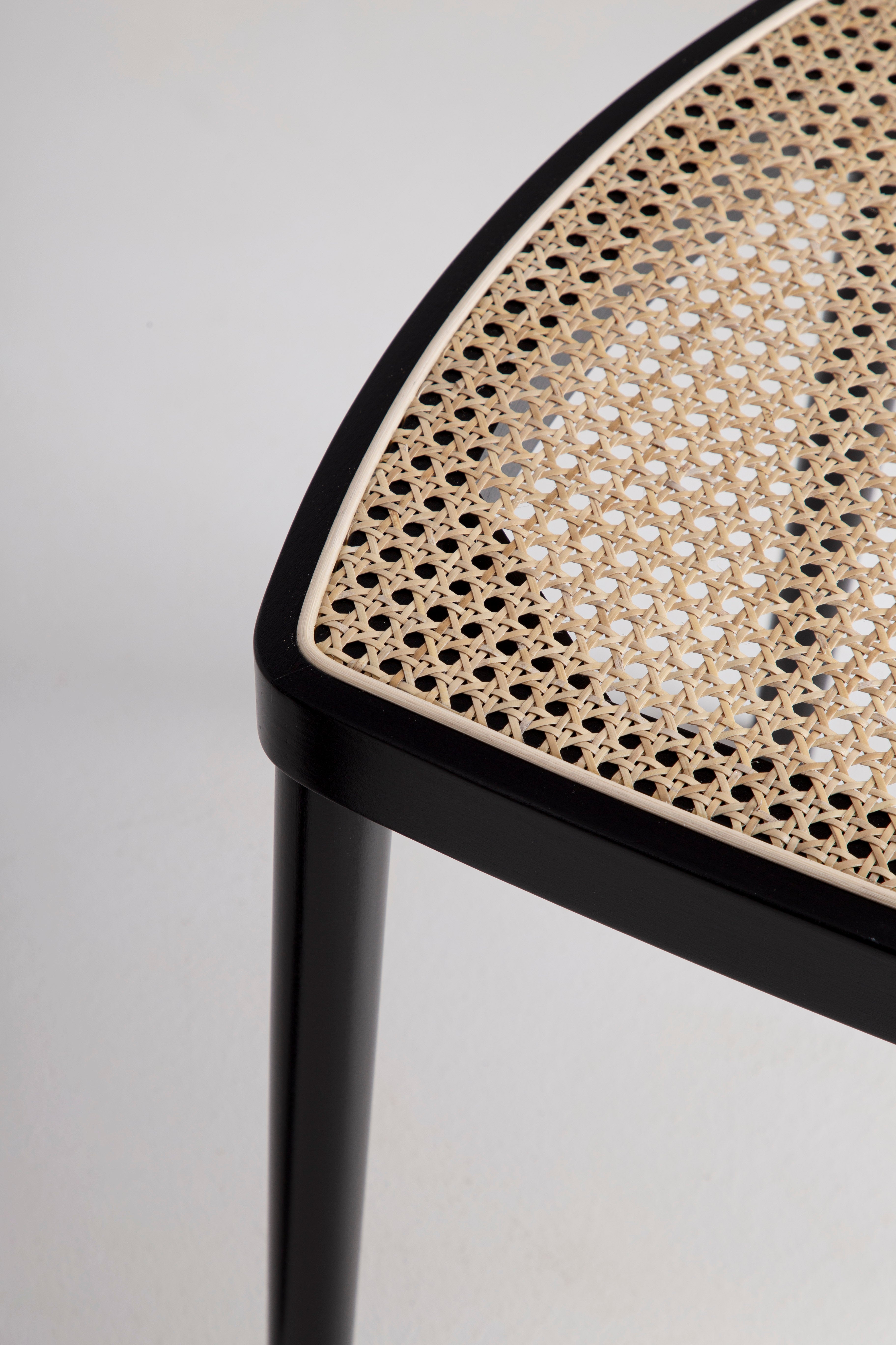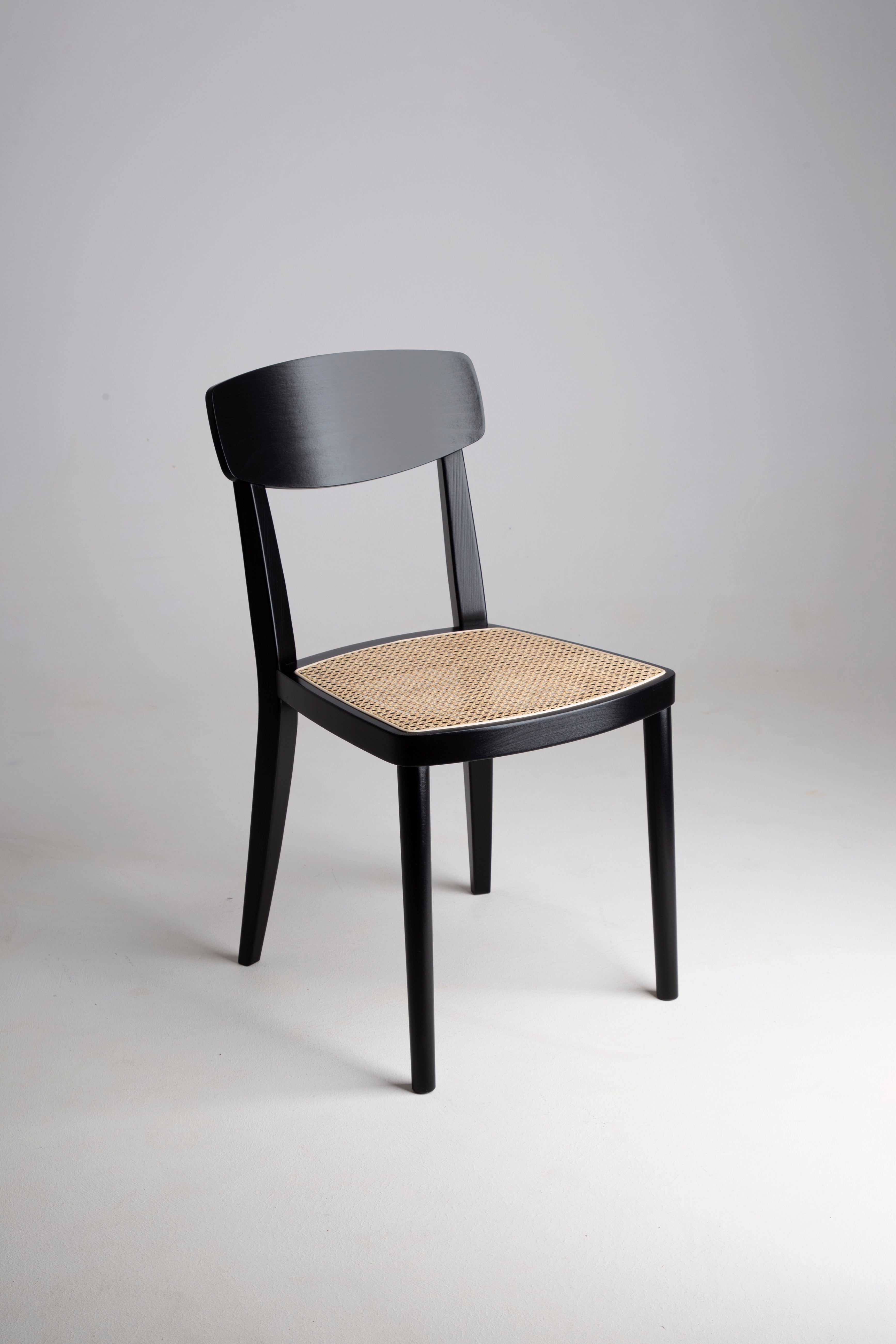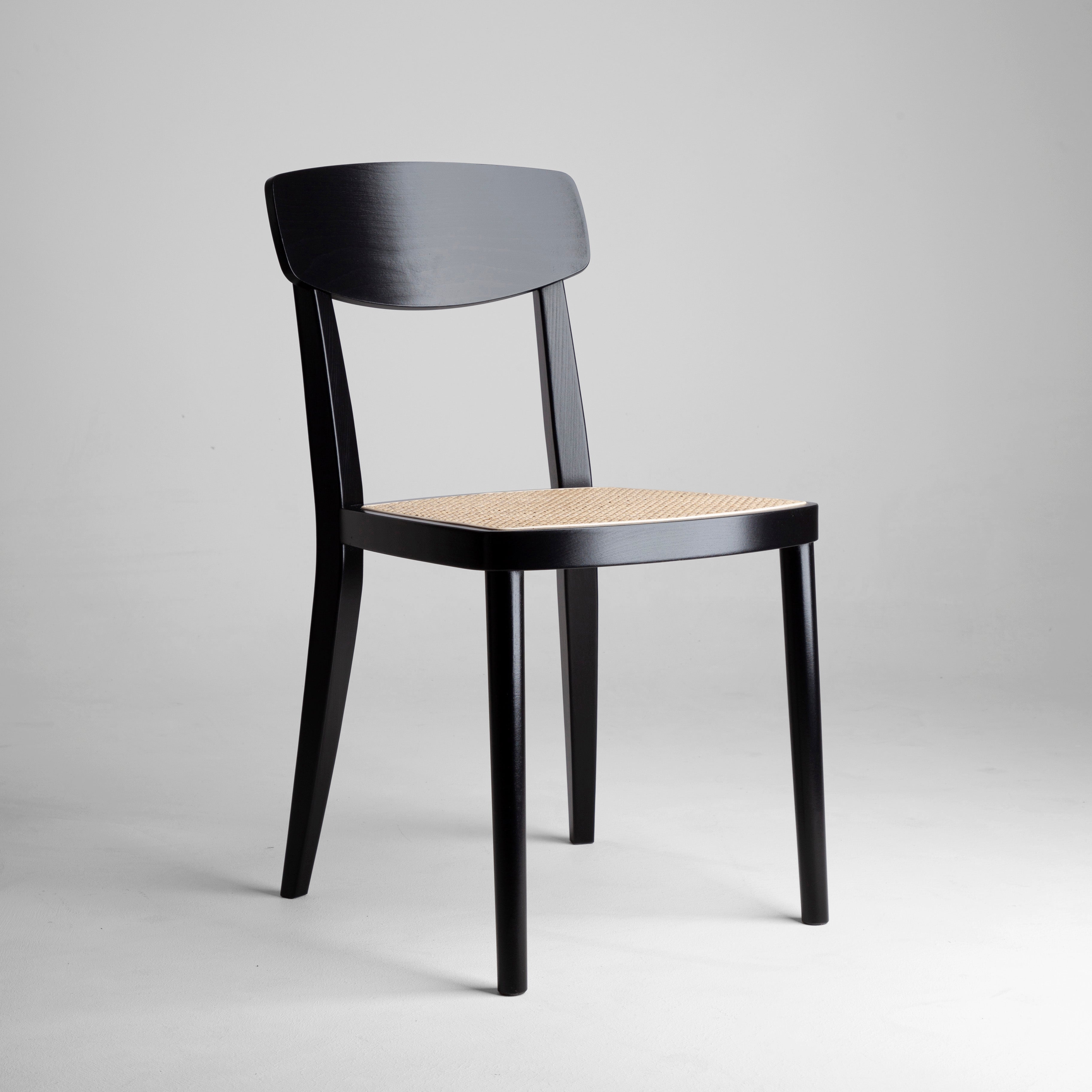 Krzesło AVERRO to wyjątkowe połączenie minimalistycznego designu i naturalnej elegancji. Wykonane z najwyższej jakości drewna bukowego, malowane na głęboki czarny kolor, podkreśla piękno naturalnego materiału, zachowując nowoczesny i wyrafinowany charakter. Siedzisko z plecionki wiedeńskiej dodaje lekkości i subtelnej faktury, idealnie komponując się z elegancką, smukłą ramą.