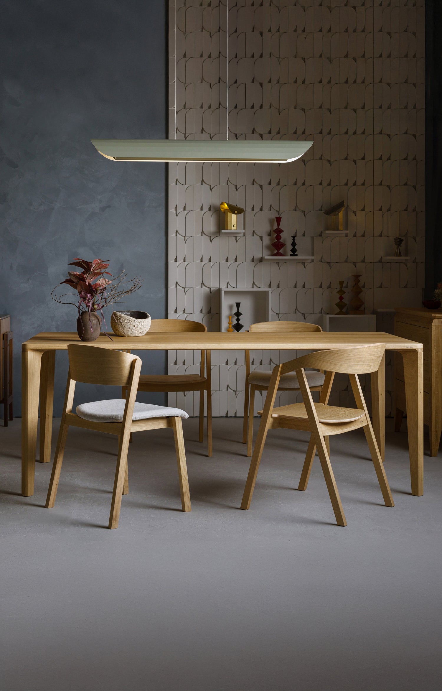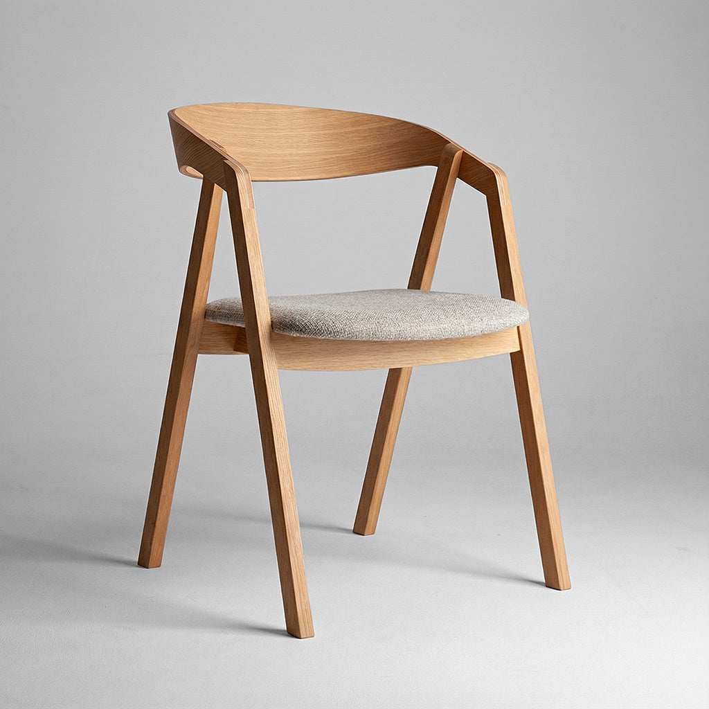 Krzesło Muri wykonane z solidnego drewna dębowego, zapewnia trwałość i stabilność, a jego klasyczny wygląd podkreślają subtelne słoje drewna. Oparcie krzesła wykonane zostało ze sklejki fornirowanej, co nadaje meblowi lekkości i delikatności, jednocześnie zapewniając komfort użytkowania. Minimalistyczny design i naturalne wykończenie sprawiają, że Muri łączy w sobie funkcjonalność z nowoczesną estetyką, doskonałe zarówno do jadalni, jak i przestrzeni biurowych.