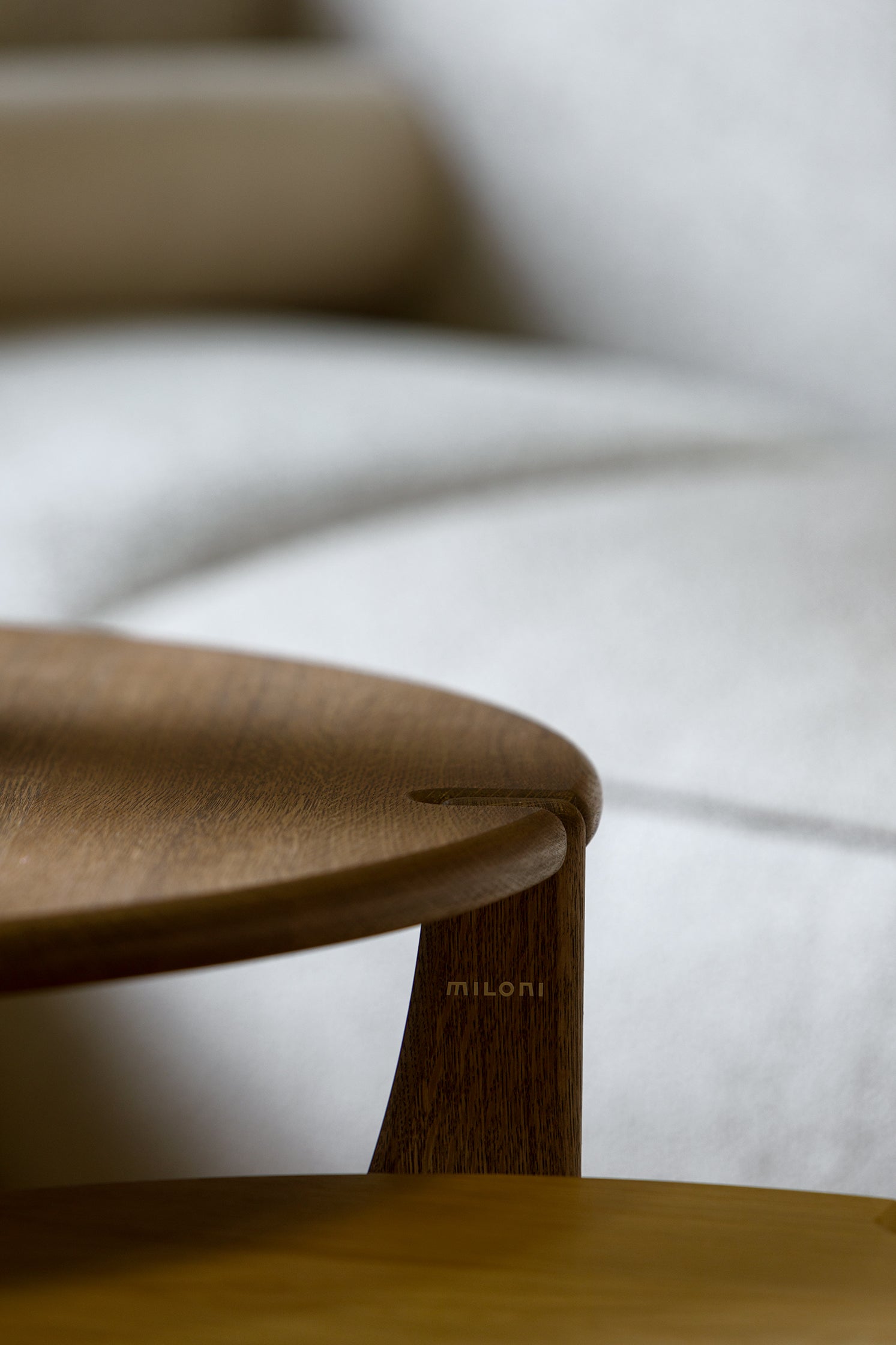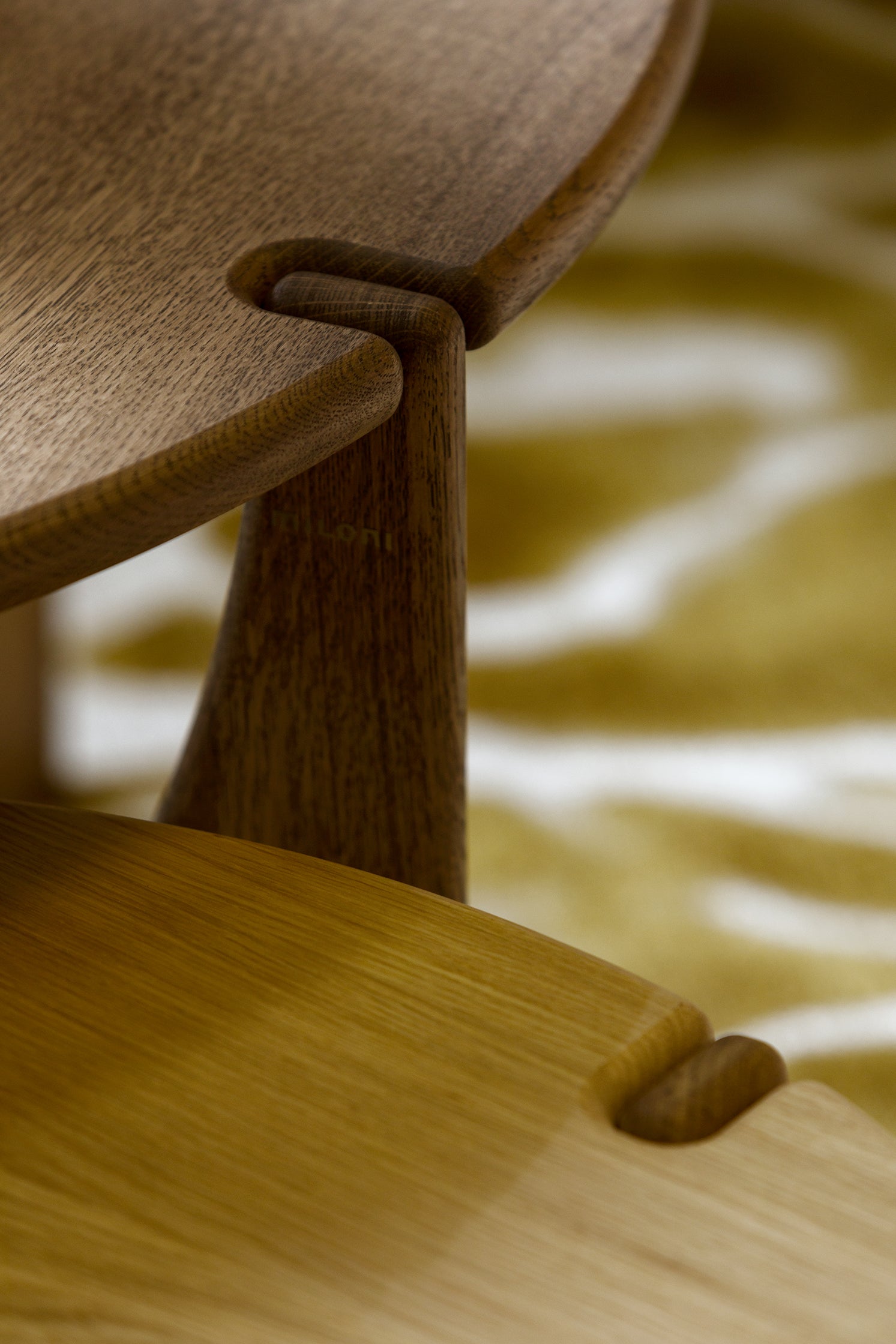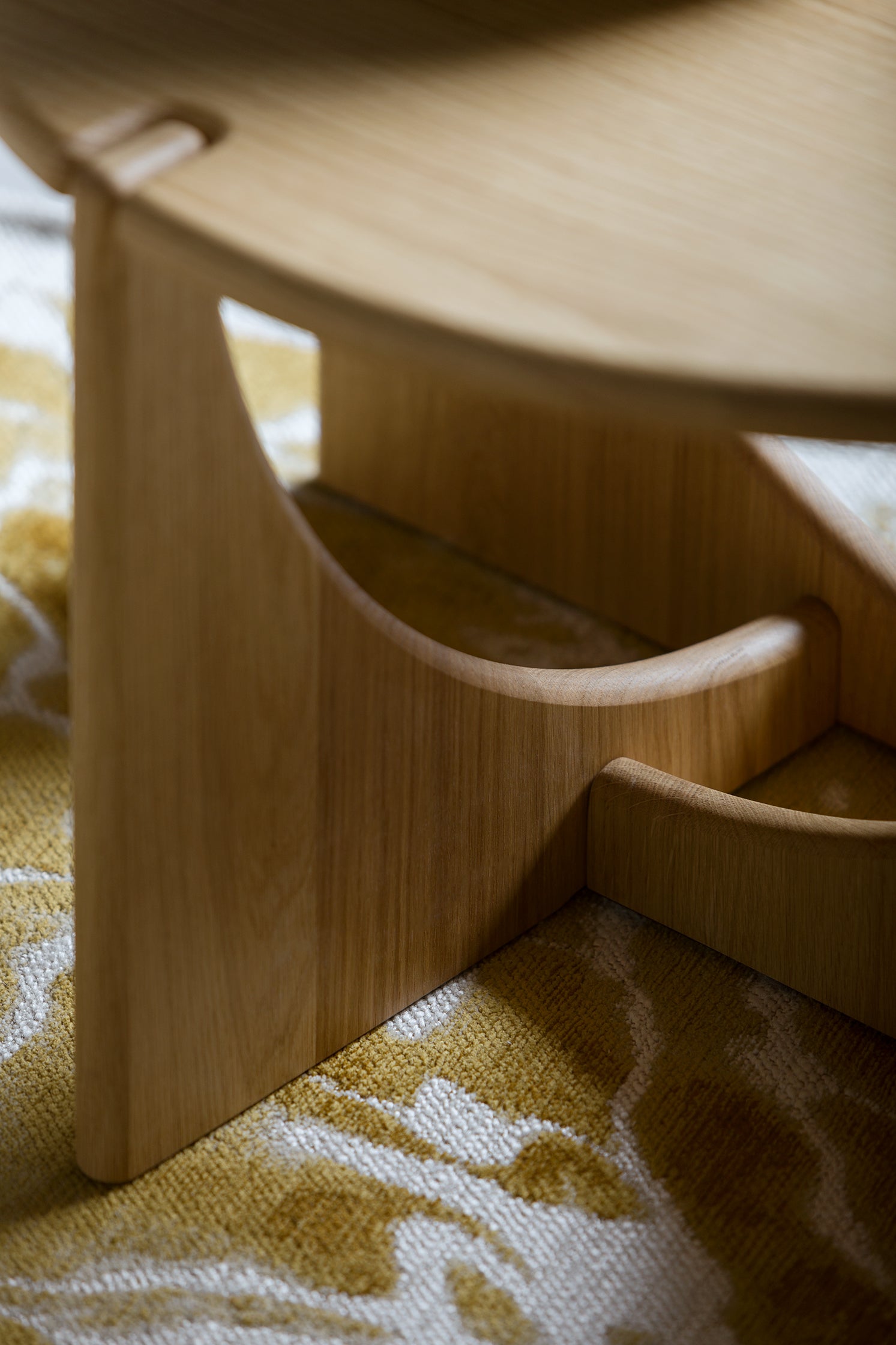 Wykonany w całości z klejonki dębowej, jest odpowiedzią na dzisiejsze potrzeby na wielu płaszczyznach. Zaprojektowany z dbałością o najmniejsze detale, ma być dostępny dla każdego i trafiać zarówno do mniejszych jak większych przestrzeni mieszkalnych, a także kontraktowych. Jego dostępność ściśle wiąże się z niewielkim zużyciem materiału, wszystkie elementy zostały wycięte z jednego kawałka drewna, ograniczając tym samym stratę materiału do minimum. Tym sposobem dbamy o środowisko i o powstawanie produktów w duchu zrównoważonego rozwoju.