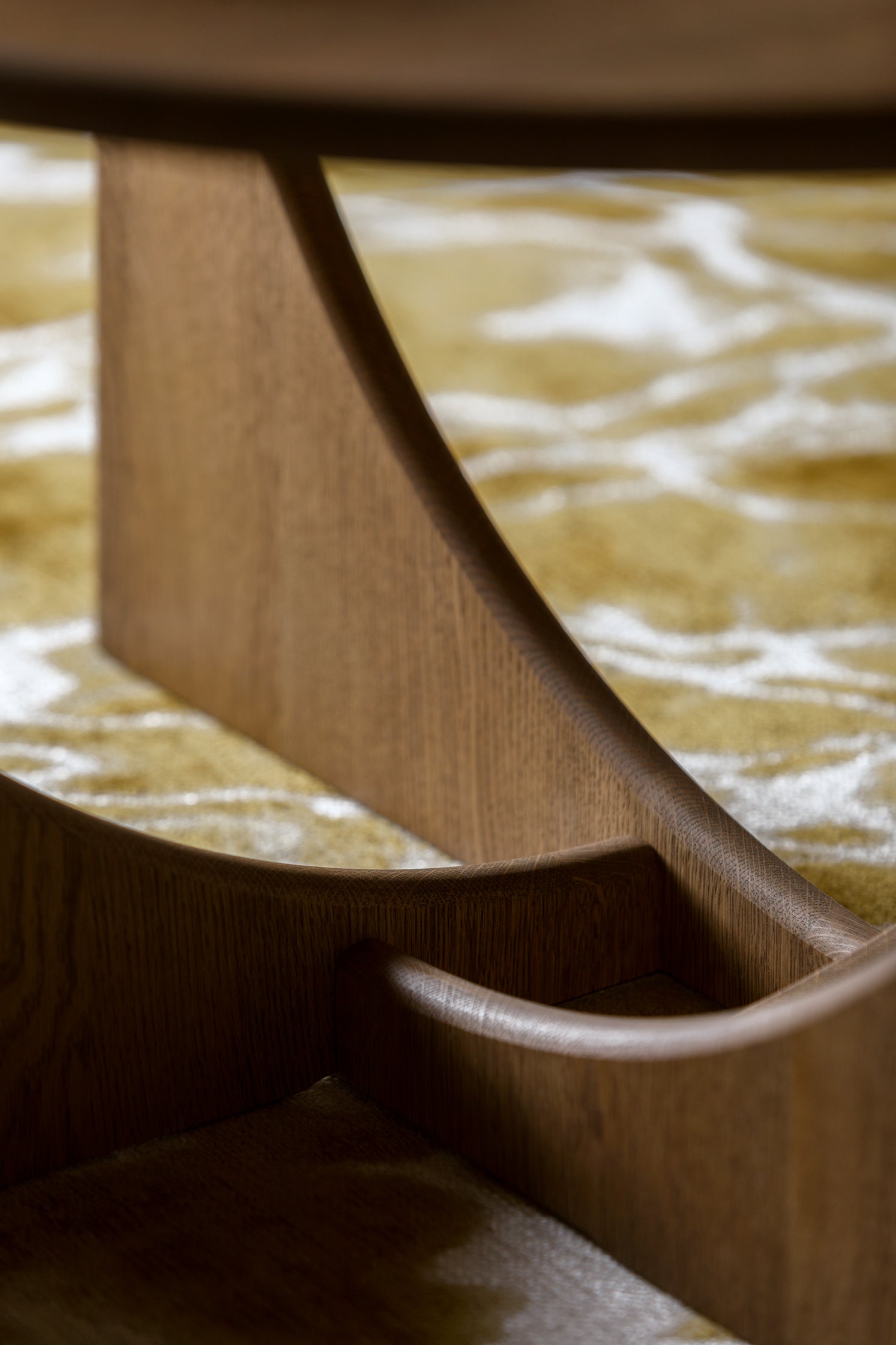 Puente może być drobnym detalem, podstawą dla wazonu z kwiatami lub też głównym obiektem, skupiającym wokół siebie użytkowników. Subtelne łuki i zaokrąglenia uzupełnione o wyrazisty rysunek drewna są kontrastowym, lecz spójnym zestawieniem, dającym całości wyjątkowy charakter.