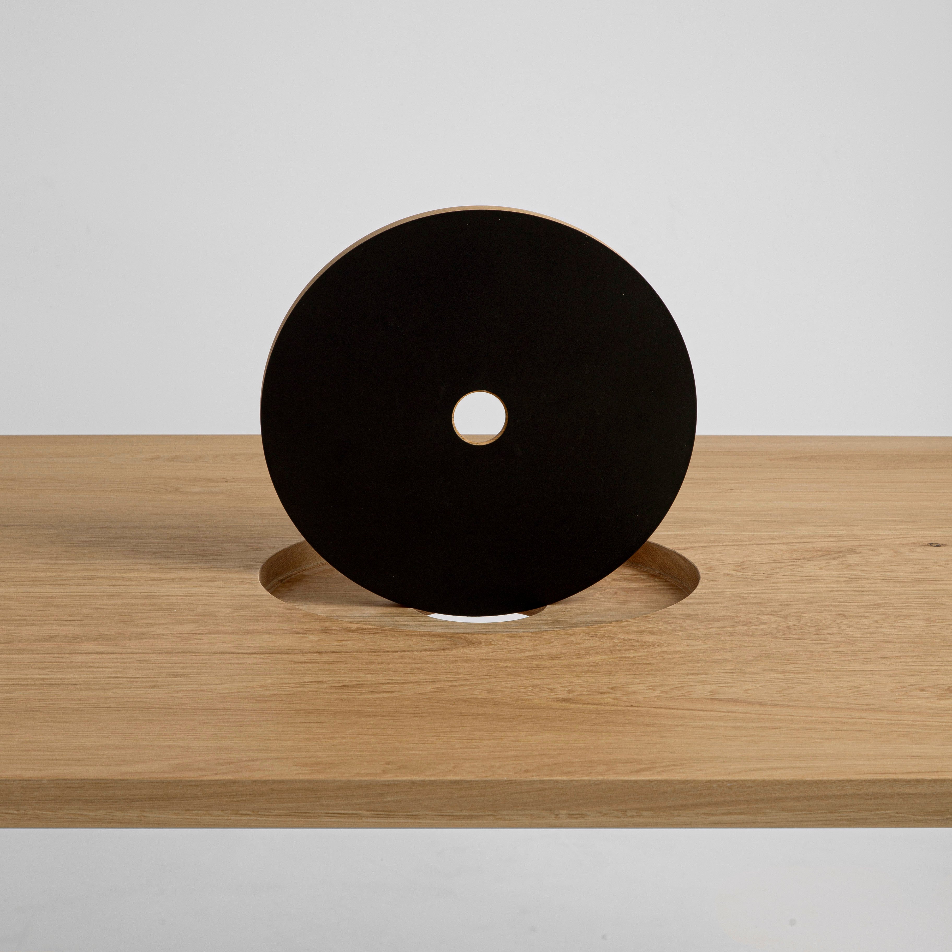 Inny wymiar lub kolor? Zamów wycenę →Idea stołu BOWL powstała w wyniku zabawy formą i próbą ograniczenia zbędnych elementów zwykle znajdujących się na blacie. Charakterystyczne subtelne zagłębienie tworzy integralną misę, a zarazem podkreśla centralny punkt stołu wokół którego tradycyjnie zbierają się jego użytkownicy. Rewers misy został wykonany z blachy, dzięki czemu po jej odwróceniu, w trakcie biesiadowania może ona stanowić podkładkę pod gorące naczynie. Na wypadek pracy przy stole zaprojektowano również otwór przelotowych na okablowanie sprzętu elektronicznego.