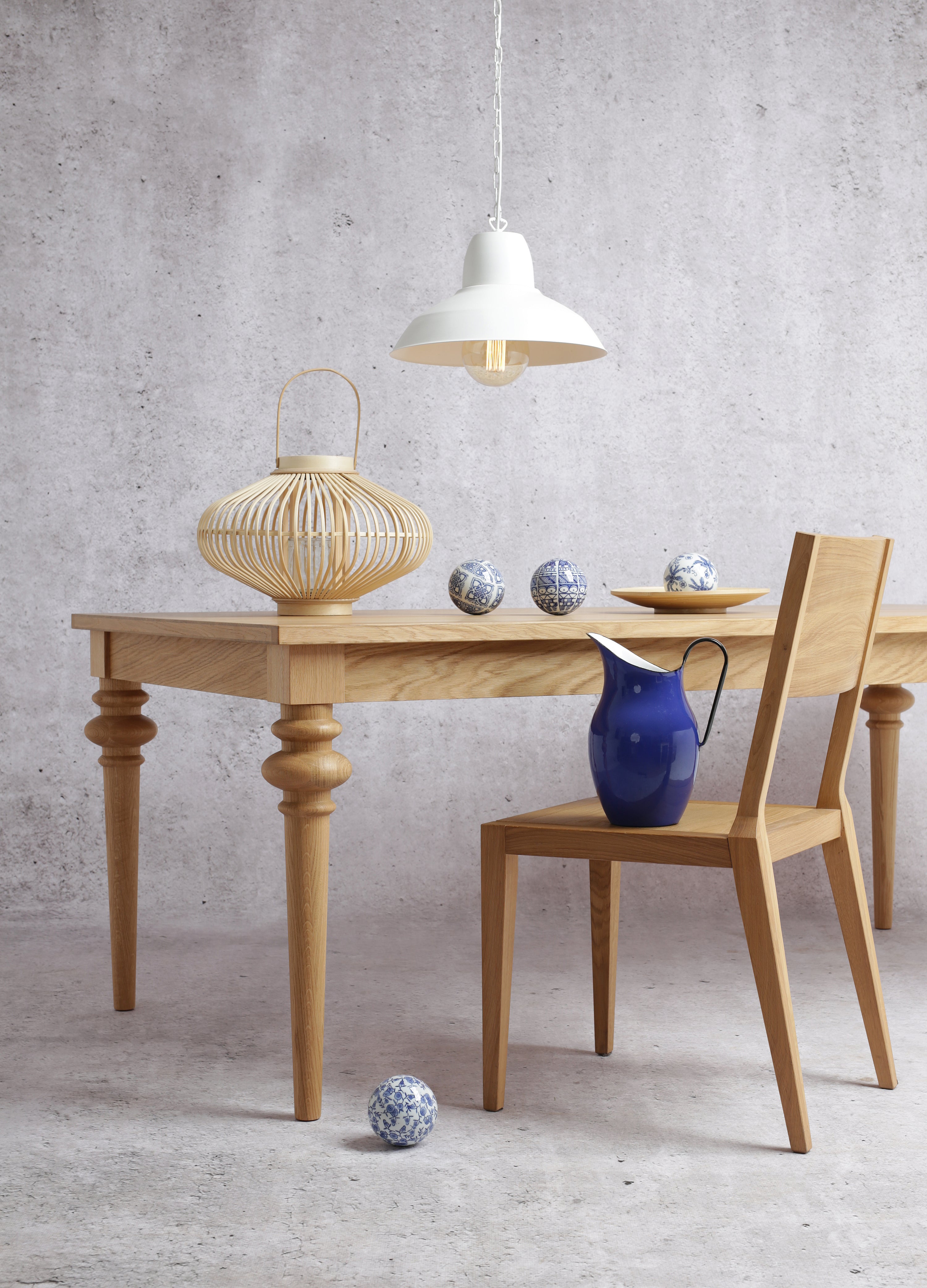 DECO to połączenie prostego w formie blatu z ozdobnie toczonymi nogami. Takie zestawienie nadaje meblowi klasyczną elegancję, podkreślając jednocześnie niepowtarzalne piękno drewna dębowego. W stole DECO każdy detal został dopracowany do perfekcji. Nie ma tu jednak przesadnych zdobień zakłócających czystość formy. Piękna bryła wyróżnia stół DECO wśród mebli z okrągłymi nogami.