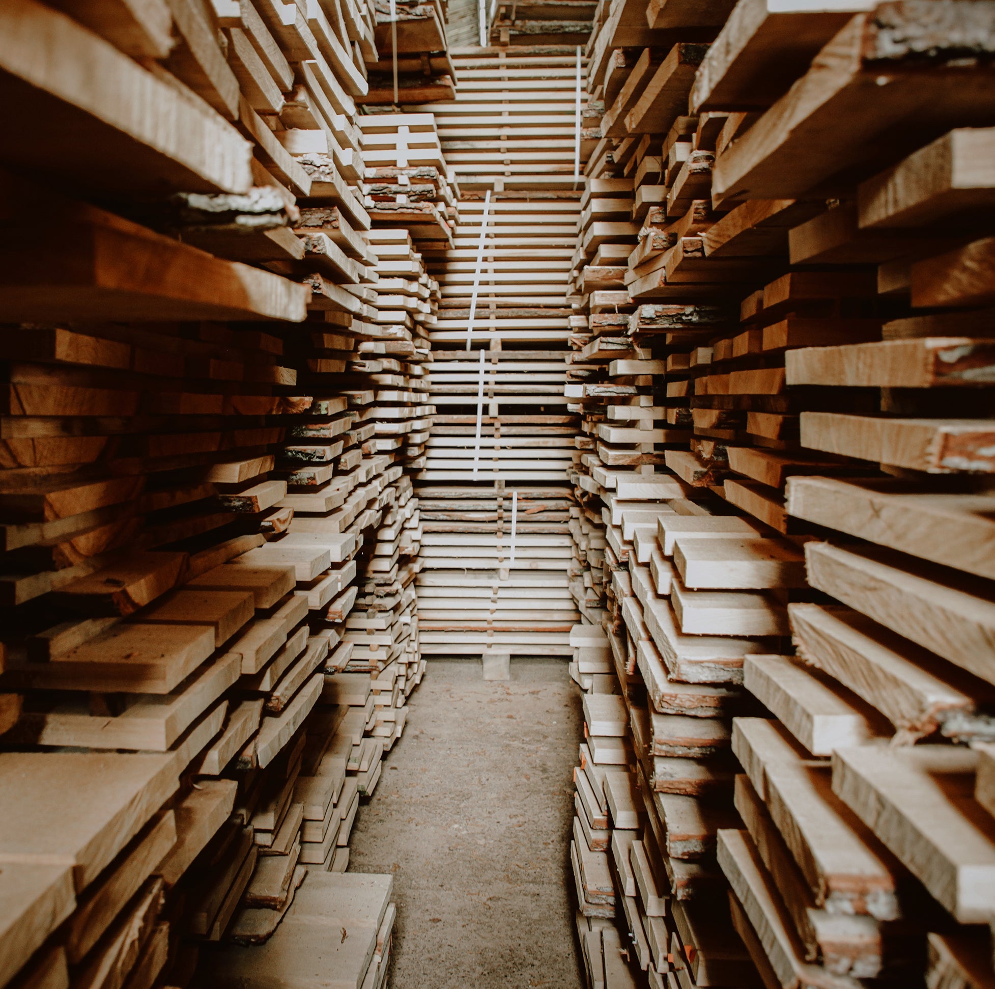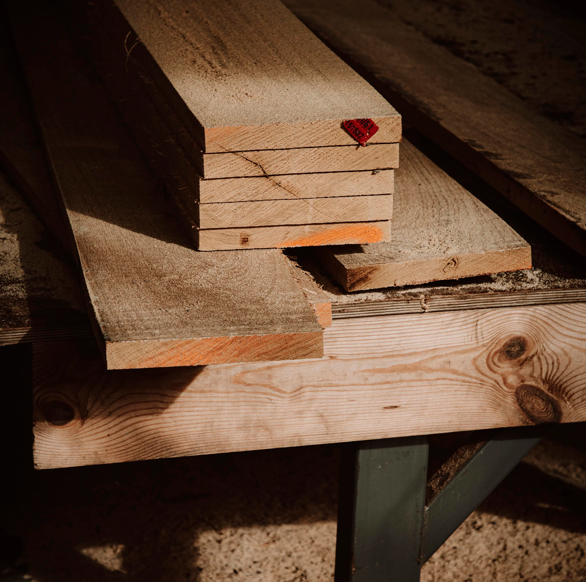 Pozornie na tym etapie „nic się nie dzieje”: wcześniej przetarte deski układamy w sztaple i pozostawiamy je w zacienionym, zadaszonym i dobrze wentylowanym miejscu. To najdłuższy etap całej produkcji - sezonowanie tarcicy trwa u nas ponad 2 lata.