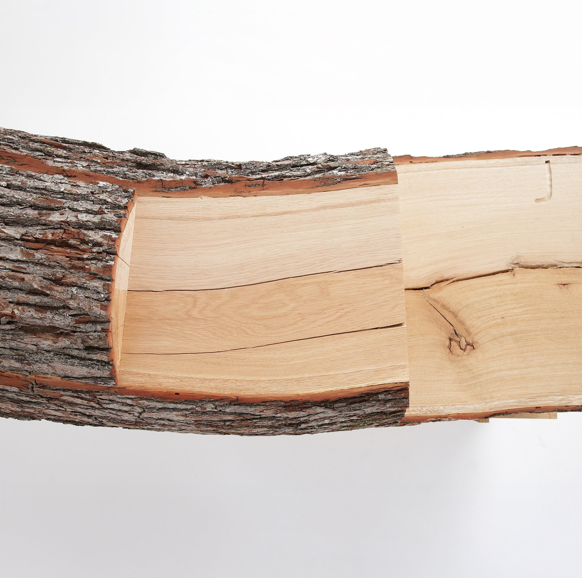 Nie każdy fragment kłody nadaje się do produkcji widocznych elementów mebli. Zewnętrzne warstwy, takie jak kora, łyko czy biel, nie nadają się do zastosowania w meblarstwie. Z kolei w centralnej części kłody, tam gdzie przebiega rdzeń, często występują pęknięcia rdzeniowe oraz wady, takie jak sęki czy zabitki - to ślady po naturalnych procesach, które drewno przez lata zabliźniało. Dlatego selekcja odpowiednich desek jest procesem niezwykle wymagającym i czasochłonnym.