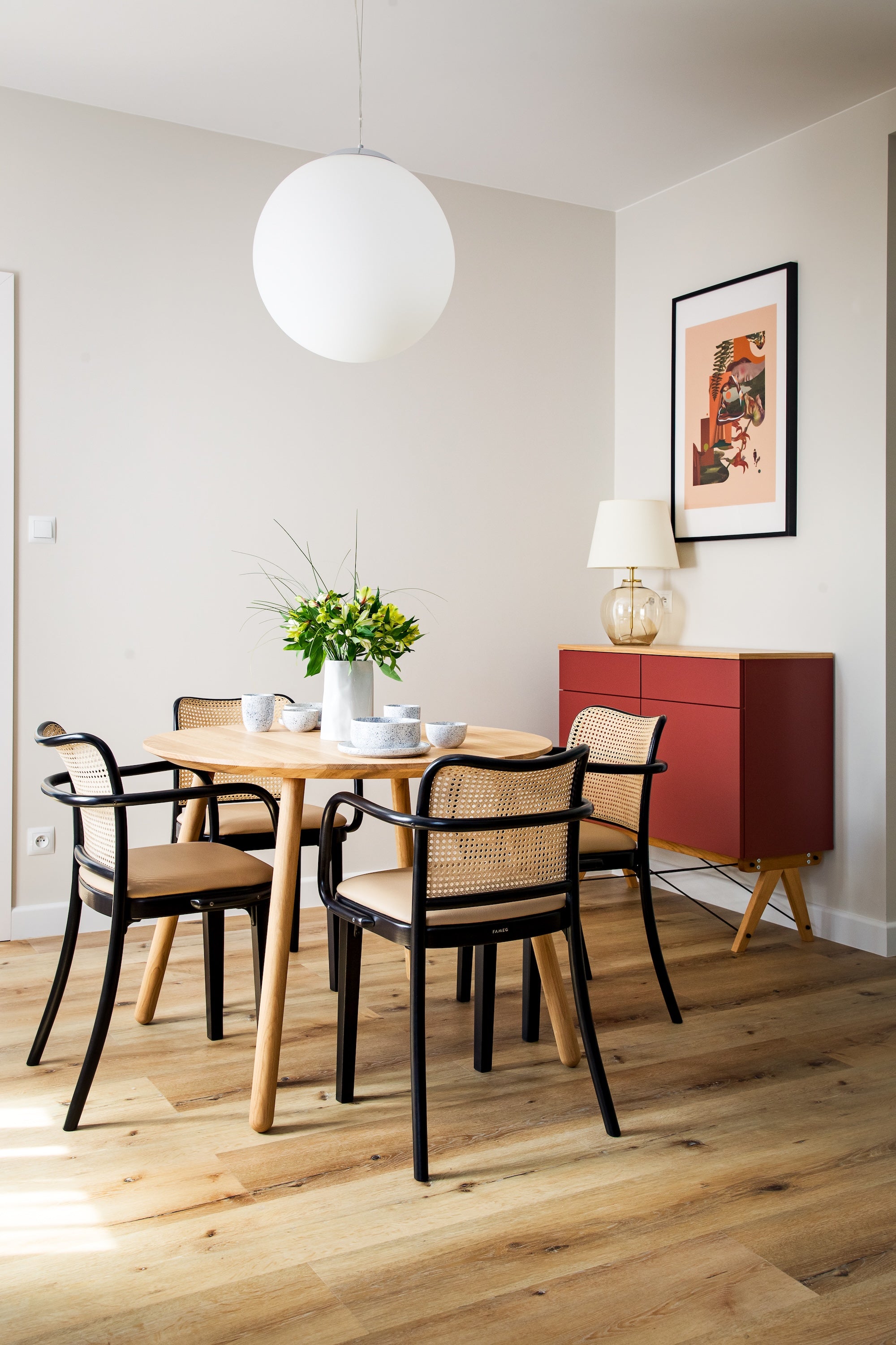 Stół okrągły OX dobrze prezentuje się w każdym wnętrzu. Do lekkiej bryły tego mebla doskonale pasują krzesła AVANGARDE. Uzupełnieniem kolekcji OX są stoliki kawowe, komody oraz szafki RTV. Całą kolekcję wyróżniają okrągłe nogi, których wysokość można dopasować do indywidualnych potrzeb.
